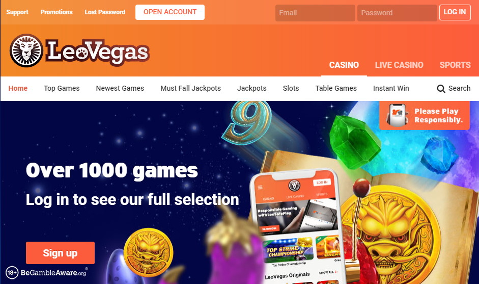 LeoVegas has 50+ games providers such as: NetEnt, Microgaming, Playn'Go, Evolution Gaming.